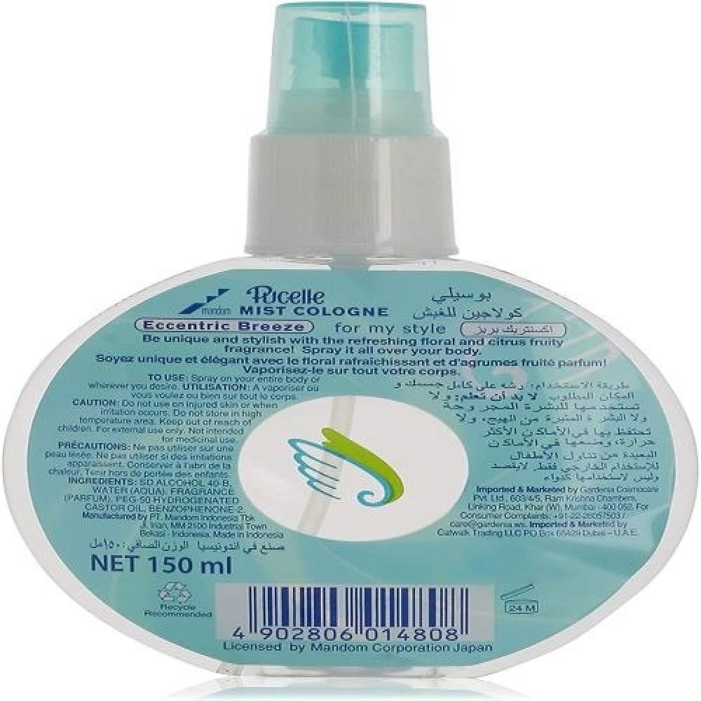Ang Pucelle Eccentric Breeze Mist ay isang pambabae na produkto at may magandang pabango. Naglalaman ito ng mga espesyal na sangkap na nagpapanatili sa balat sa ilalim ng mga braso na malambot at makinis. Angkop para sa lahat ng uri ng balat at lalo na banayad sa sensitibong balat. Ang Cologne Mist for Girls ay isang kakaiba at eleganteng pabango na sariwa na may mga floral at citrusy notes. Nakakatulong ang ambon na magbigay ng mas magaang amoy kumpara sa mga pabango.
